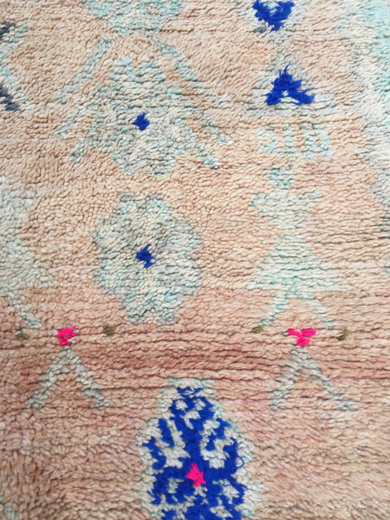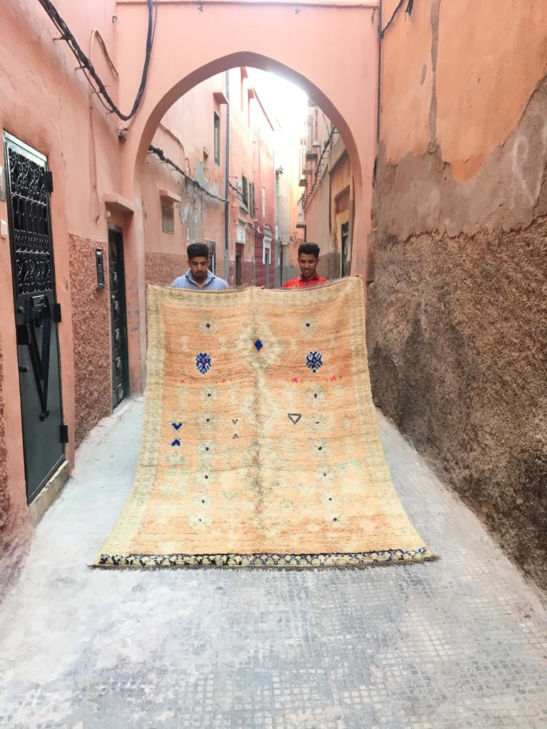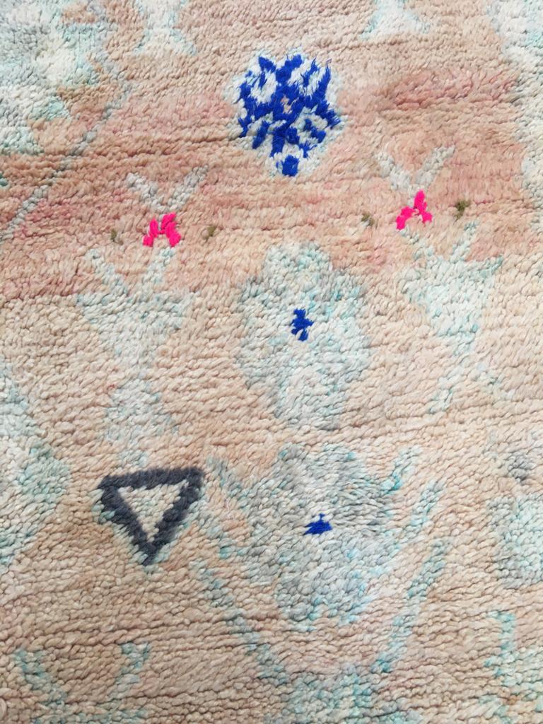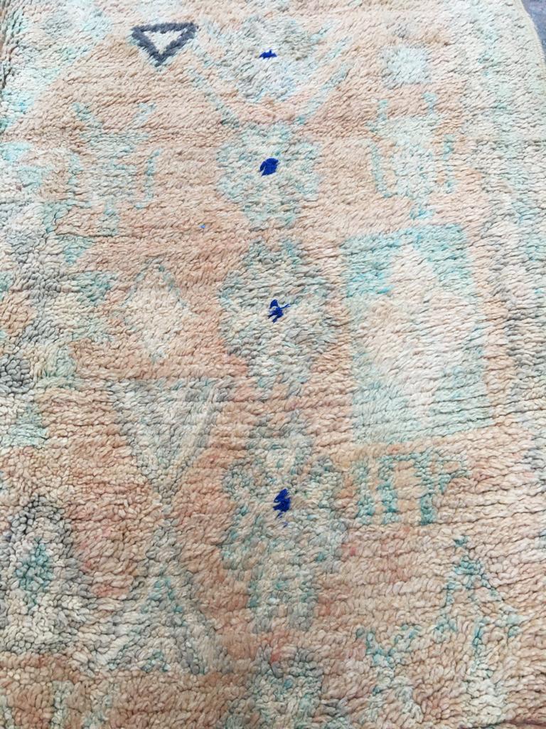 Each Moroccan vintage rug is chosen with expert care to ensure there are no obvious markings. However, being of vintage nature, some show signs of previous repair and others will have their trims repaired.