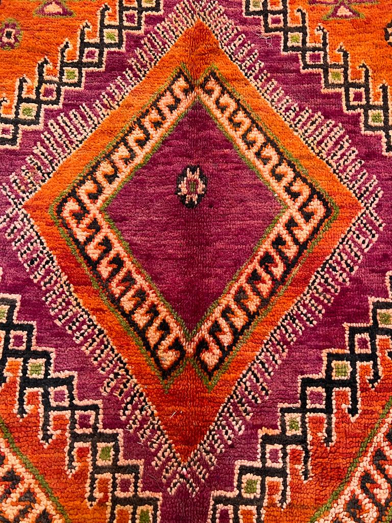 Each Moroccan vintage rug is chosen with expert care to ensure there are no obvious markings. However, being of vintage nature, some show signs of previous repair and others will have their trims repaired.