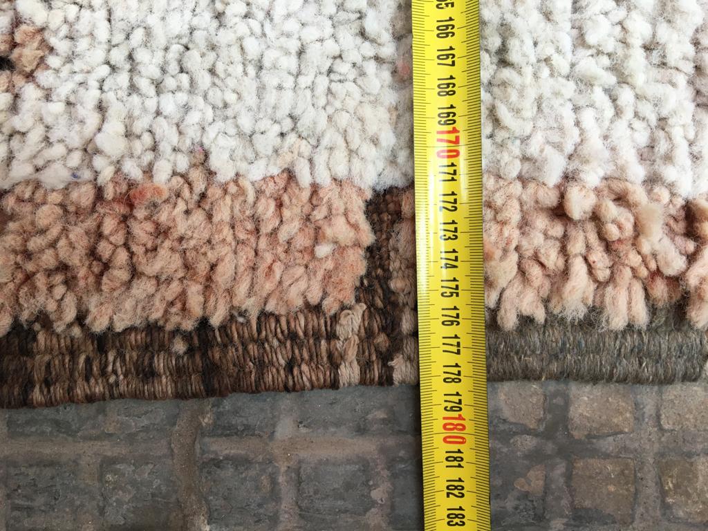 Each Moroccan vintage rug is chosen with expert care to ensure there are no obvious markings. However, being of vintage nature, some show signs of previous repair and others will have their trims repaired.