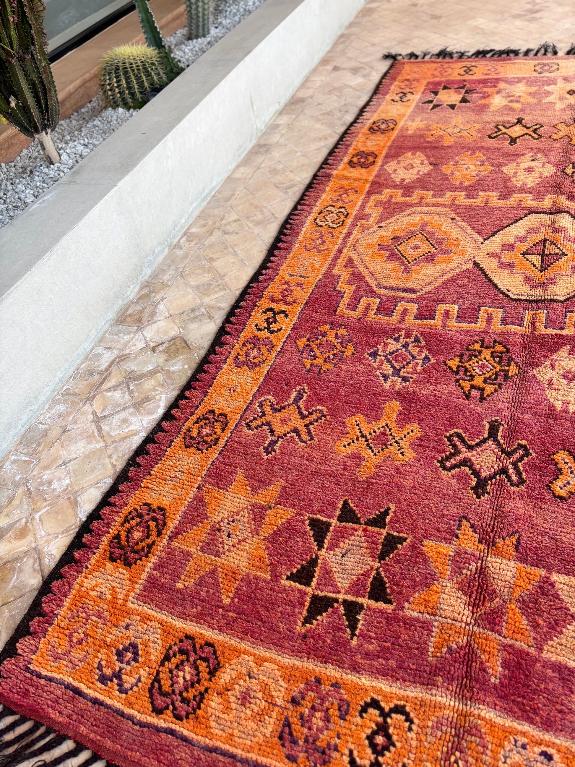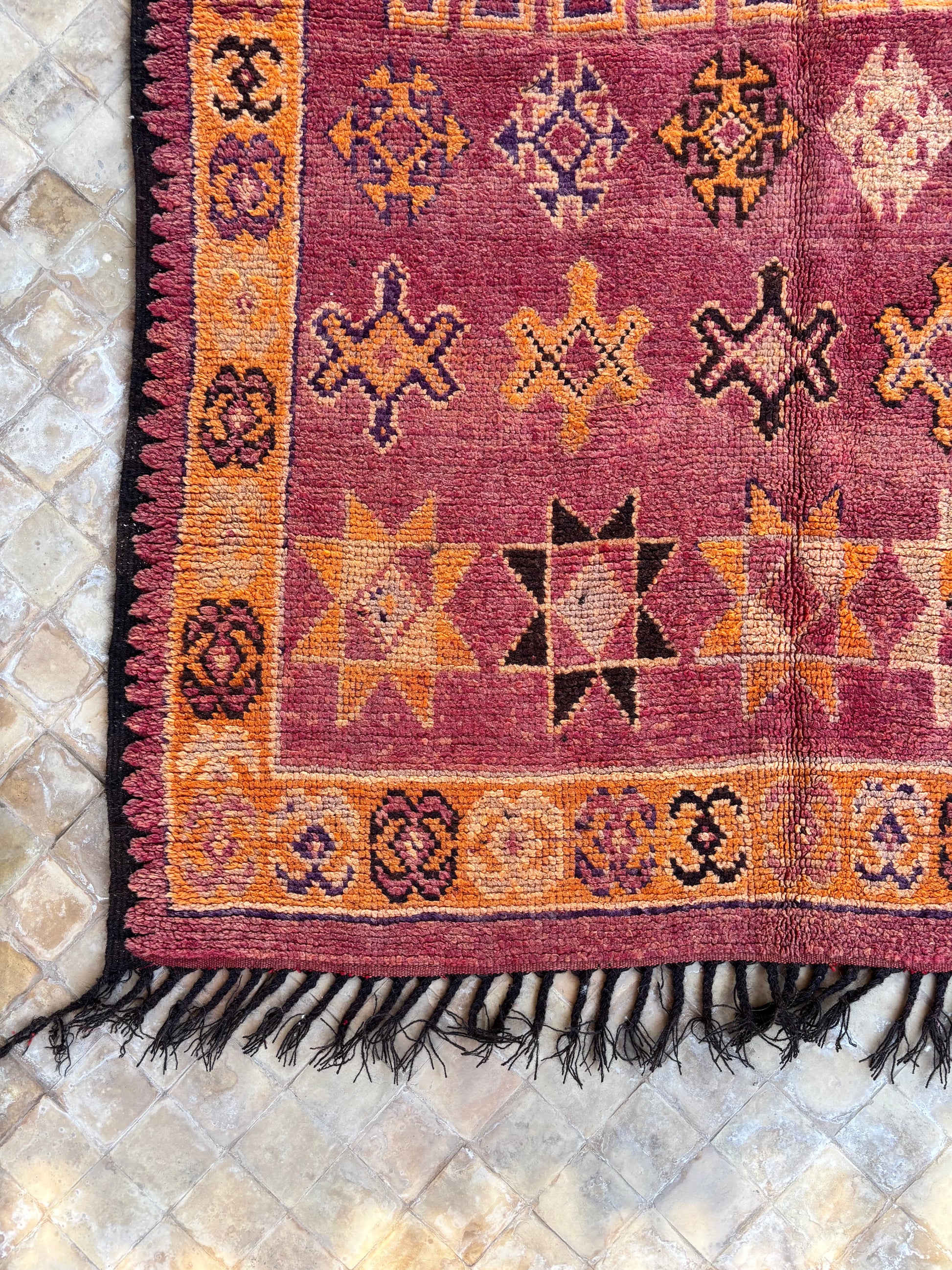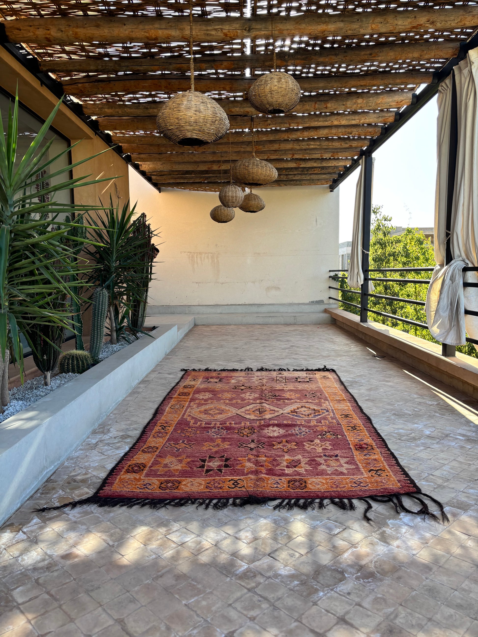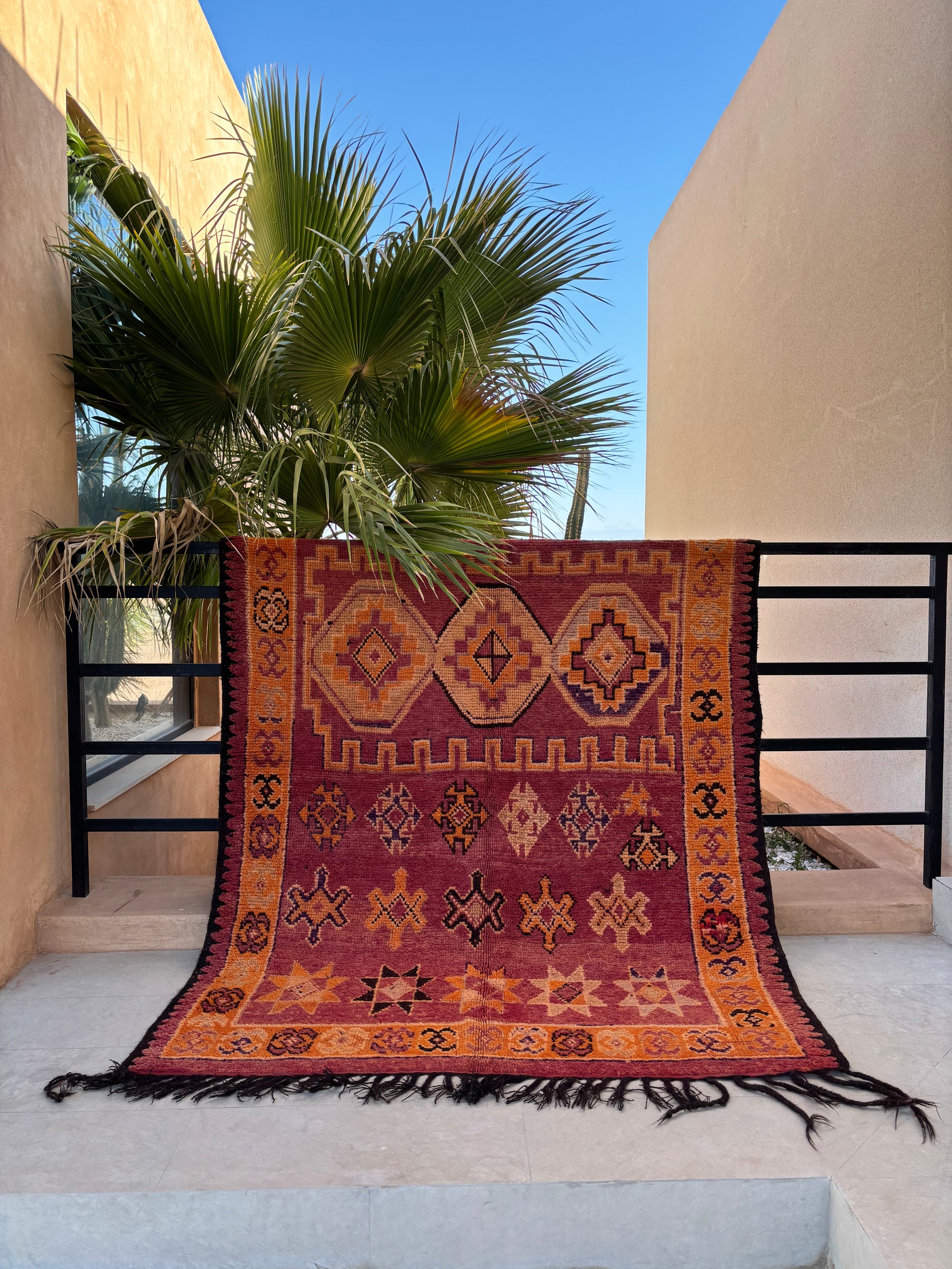 A vintage Moroccan rug is a handwoven wool rug crafted by Berber artisans, often featuring intricate geometric patterns, faded earthy tones, and a rich history. Aged to perfection, these one-of-a-kind rugs bring warmth, character, and authenticity to any space, making them a timeless addition to both modern and bohemian interiors.